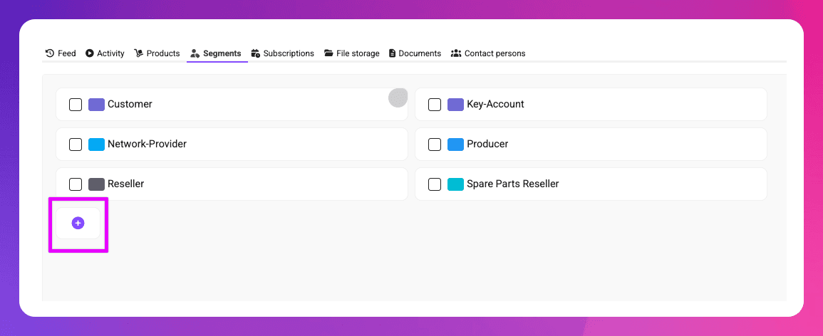 Adding segments is now faster and more convenient. You no longer need to open the settings to create a new segment - segments can now be added directly from within the contact view. Existing segments can also be edited right there.